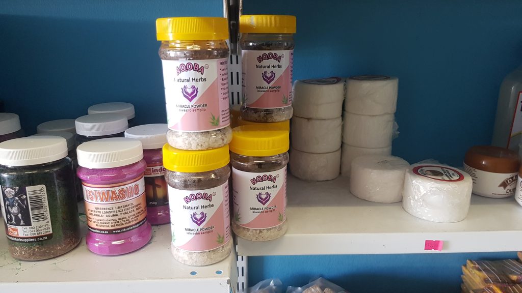 NQOBA Miracle Powder displayed at a pharmacy