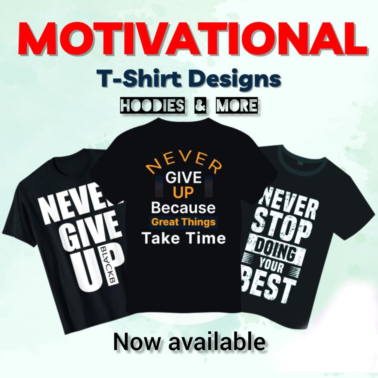 Inspirational clothing wear constituting t shirts, sweaters, hoodies and tracksuits branded with motivational quotes